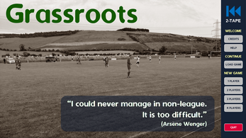 GRASSROOTS is a football manager game with a difference. You take over a struggling non-league side, rooted at the bottom of Division 4. Can you take them to the regional title?